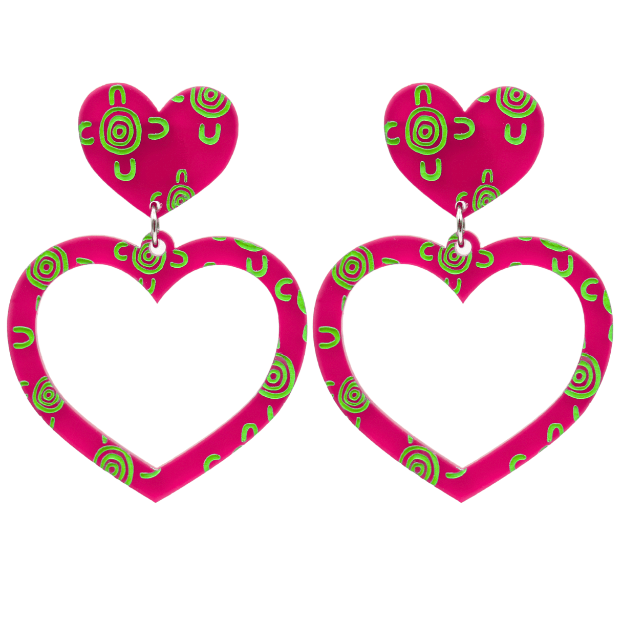 Hand painted signature Haus of Dizzy Barbie Heart Sea Glass earrings with your choice of heart with stud, heart with clip ons or hooks (without heart top).