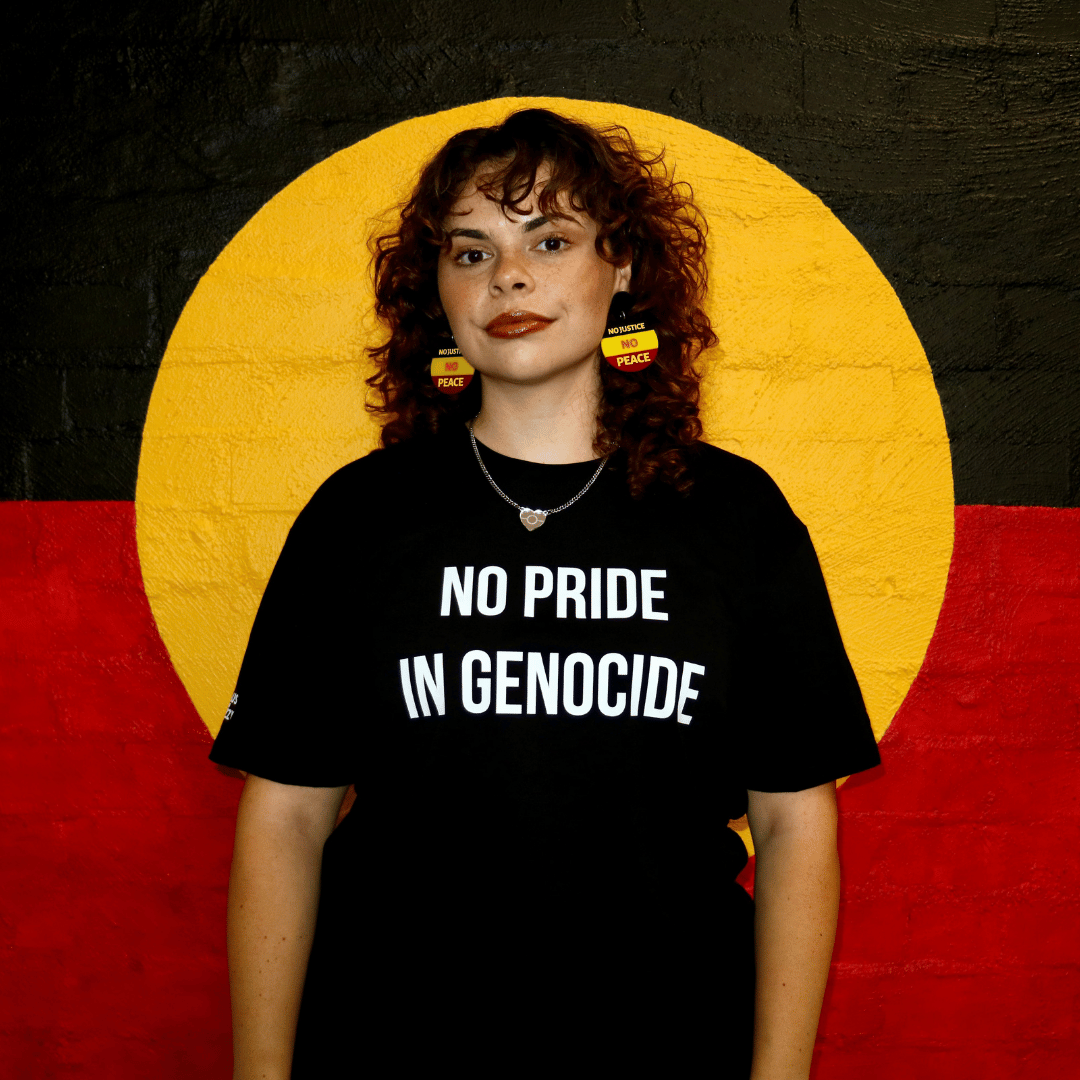 ["_addon-products","Aboriginal","ally friendly","Clothing","First Nations","First Nations People","First Nations Pride","no pride in genocide","T-shirt","Wear the Resistance","woo_import_1"]