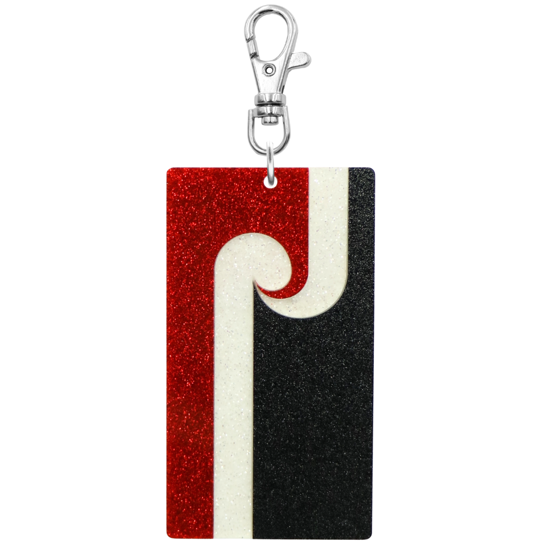 An image of Haus of Dizzy 'First Nations Pride' glitter Maori flag, rectangle shaped keychain, with red, white and black glitter acrylic.