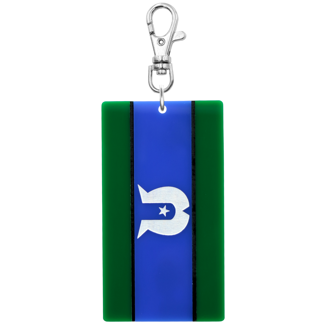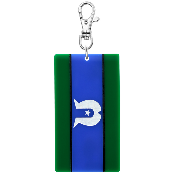 An image of Haus of Dizzy 'First Nations Pride' Gloss Torres Strait Islander flag, rectangle shaped keychain, with green and blue Gloss acrylic with red and white paint fill.