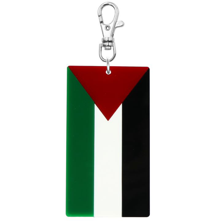 An image of Haus of Dizzy 'First Nations Pride' gloss Palestine flag, rectangle shaped keychain, with black, red, white and green gloss acrylic.